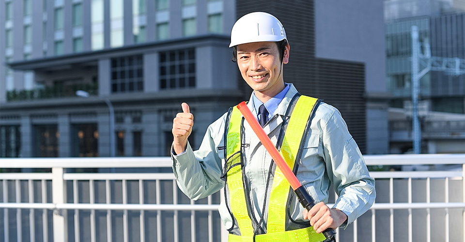 お仕事は、公共事業の交通整備をメインに、ほかにも協力会社や民間企業などの依頼を受けております。